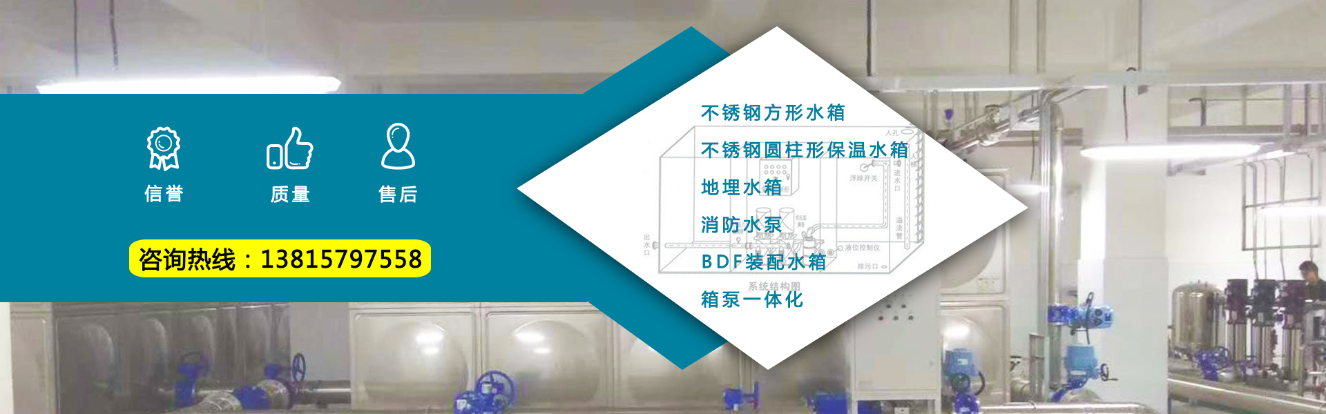本公司拥有多年的各类供排水设备的制造、加工及安装经验,主要产品有不锈钢方形水箱、不锈钢圆柱形保温水箱、地埋水箱、消防水泵、BDF装配水箱、箱泵一 体化等产品